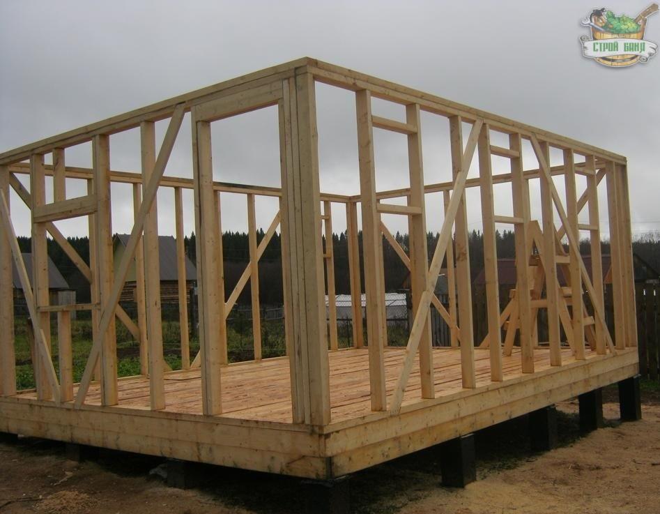 Монтаж каркаса стен бани