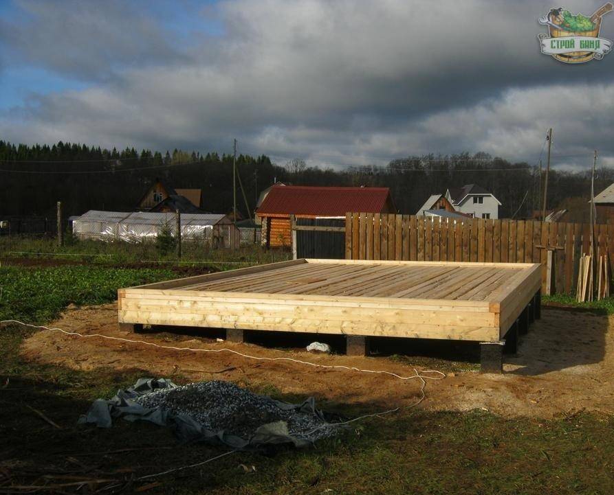 Исходные данные: имеется столбчатый фундамент с деревянным ростверком. Поверх ростверка уложены доски (150х25 мм), играющие роль чернового пола (в дальнейшем они будут демонтироваться).