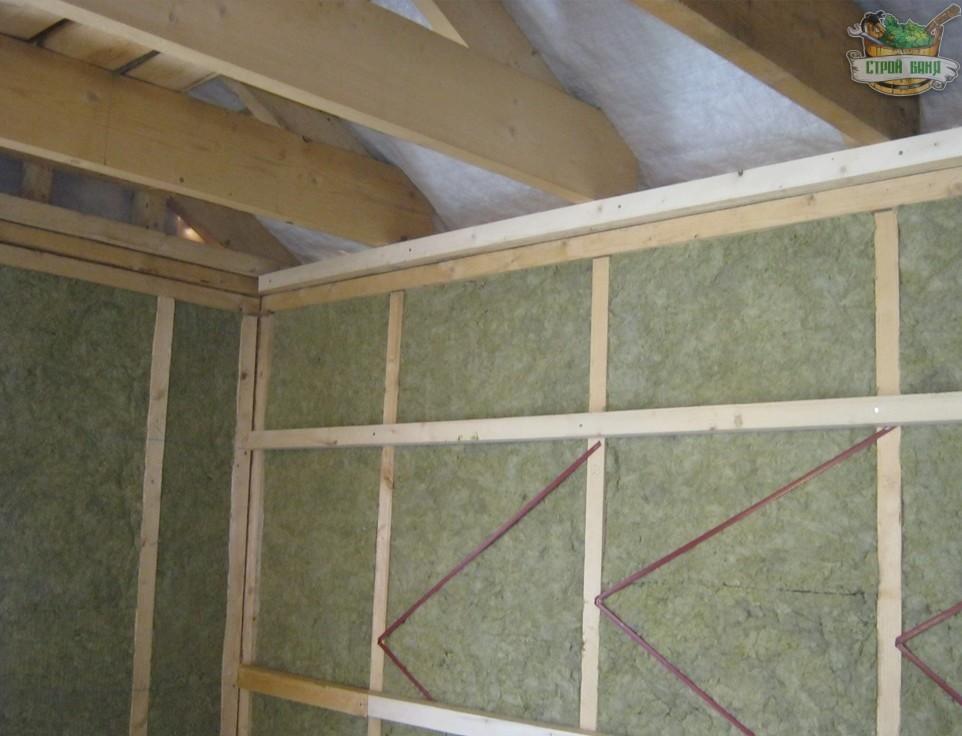 Монтаж контробрешетки на внешних стенах бани