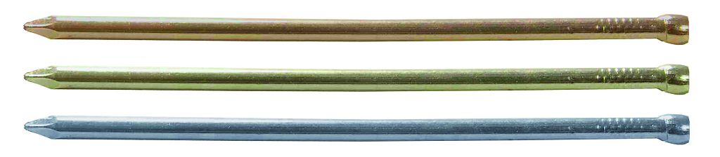 Так называются гвозди с маленькой цилиндрической шляпкой, диаметр которой лишь немного больше, чем диаметр стержня. Они предназначаются специально для фиксации декоративной отделки, так как обеспечивают потайное крепление. Эти гвозди обладают небольшой толщиной, вследствие чего легко входят в древесину, не вызывая растрескивания. Маленькую шляпку несложно утопить в толще материала при помощи добойника.