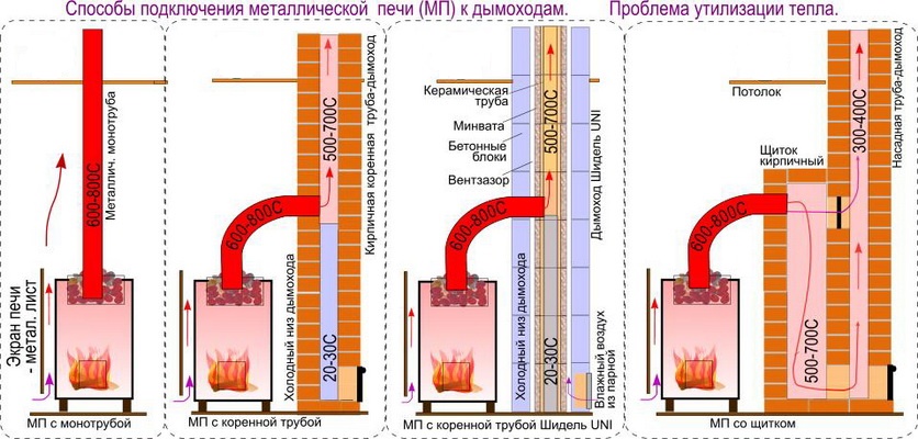 Способы подключения дымоходов к печи