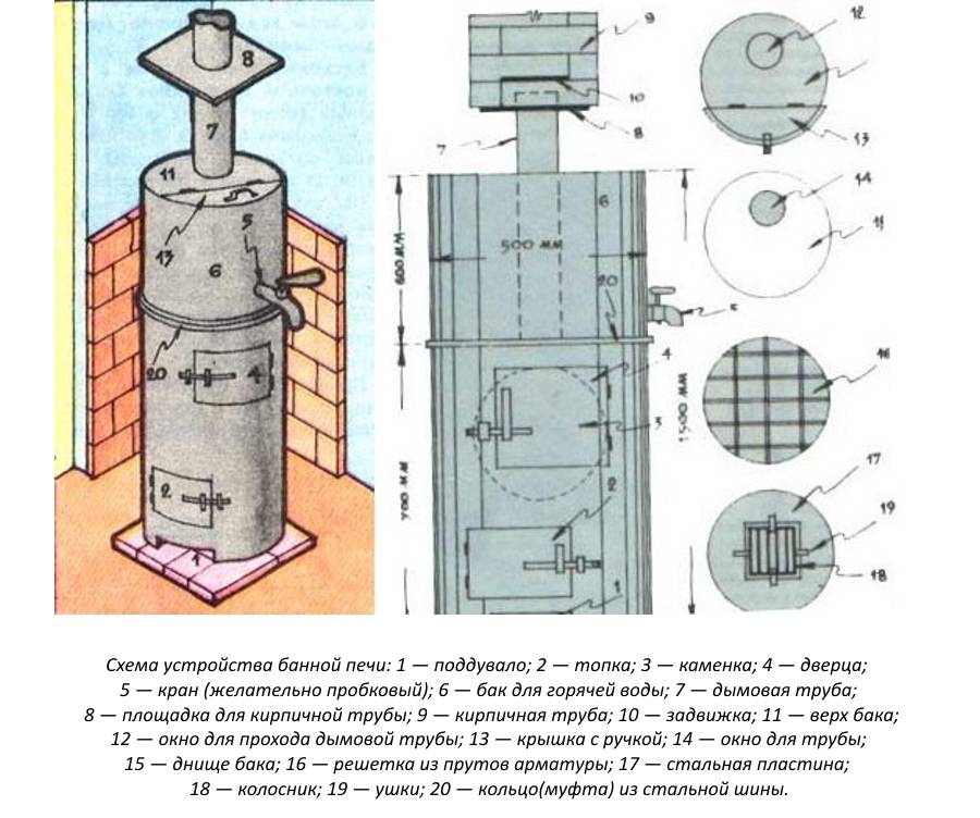 Схема устройства банной печи из трубы