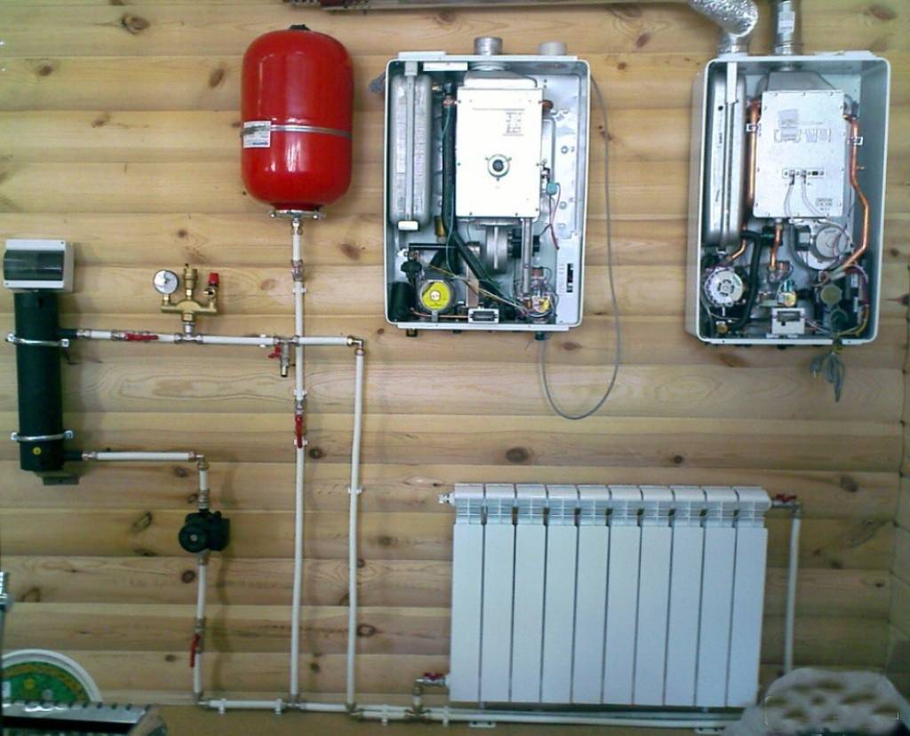 - Во-вторых, можно использовать стандартный газовый котёл (такой же, как и в жилых домах). Но в таком случае Вам придётся позаботиться об оборудовании систем обогрева (установка радиаторов отопления, укладка труб, подведение к бане газонесущей трубы или системы подключения к баллону).