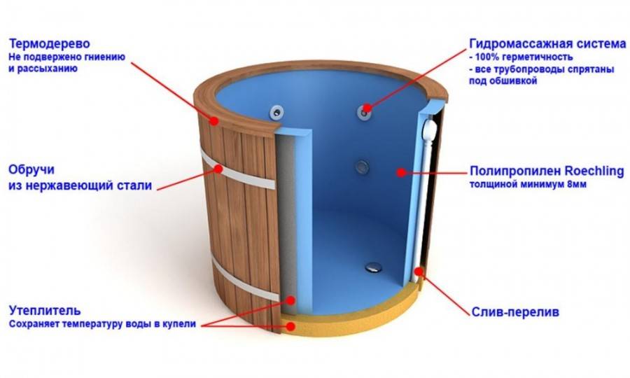 Конструктив у уличной купели нехитрый. Принцип работы на фото ниже.