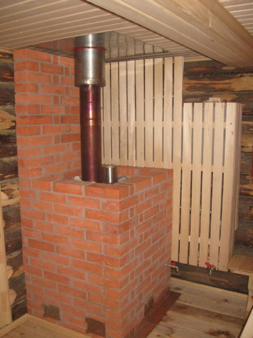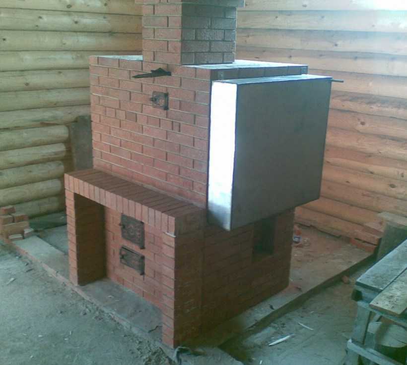 Кирпичная конструкция бывает разнообразных размеров и вариантов дизайна, а значит, может вписаться в любую баню, демонстрирующую индивидуальность владельца. Как правило, складываются печи с основанием 3,5 на 4 кирпича (89 на 102 сантиметра), либо 4 на 5 кирпичей (102 на 129 сантиметра). Высота без трубы может быть 168 или 210 сантиметров. Наиболее популярной является модель с баком для нагрева воды.
