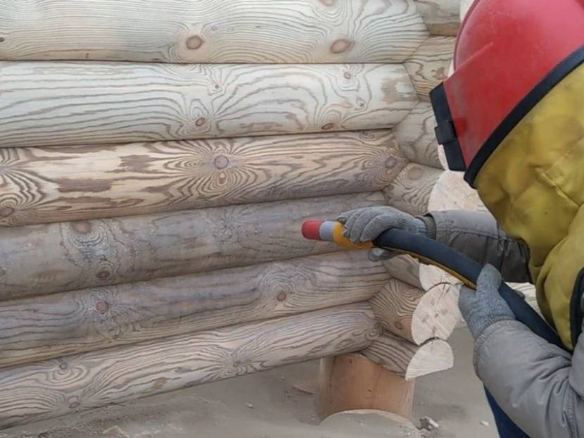 Все бревна для сруба обязательно требуется обработать антипиреном, чтобы избежать возгорания конструкции.