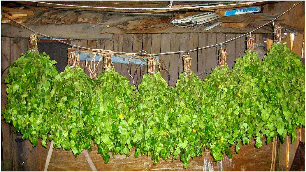 Только что собранная листва с березы совершенно не годится для парной. Ее нужно тщательно высушить, а после сформировать и правильно связать. Делается все легко и просто, без каких-то особых усилий. Отборные ветви раскладываются на чистой ткани, наши предки делали это в сенцах под потолком, где тепло и сухо. Так, листва лежит около недели. Периодически ее ворочают, чтобы в дальнейшем веник обрел ровный зеленый цвет.