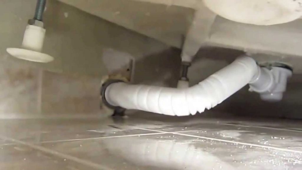 - подсоединить гофрированную трубу к сливному отверстию для подвода к канализации.