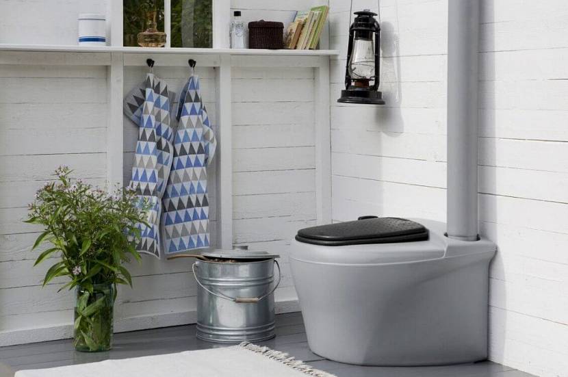 Минусы: Не так хорошо справляется с запахами, как химический биотуалет – нужно устанавливать вытяжку. Требует электрической сети 220 в, если на даче регулярно и надолго пропадает электричество, трудности неизбежны. Необходимо отводить жидкость из туалета в яму или прямо в землю.