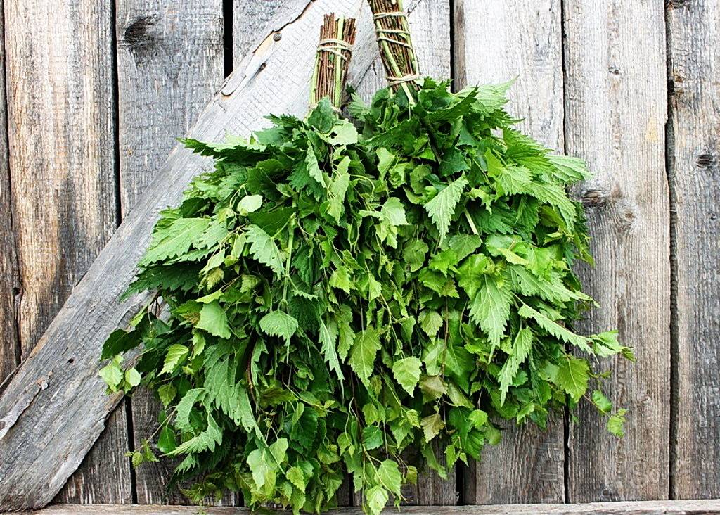 Самый популярный вариант – веник из крапивы. Для предотвращения ожогов и сохранения целебных свойств, такую связку нужно правильно запаривать. Вначале опустить ее в горячую, а после в холодную воду, что позволит повысить упругость и мягкость листьев.