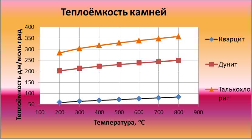 Теплоёмкость зависит от температуры нагреваИсточник pinimg.com Какие камни лучше использовать для бани