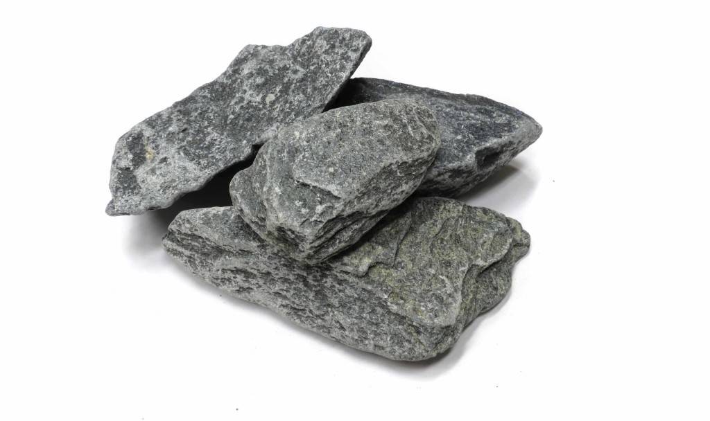 Камень с сероватым оттенком не менее популярен, чем жадеит. Это объясняется не только его высокой прочностью, но и способностью быстро нагреваться и накапливать внутри себя много тепла. Использование в парилке талькохлорита рекомендовано специалистами, так как он позволяет получить легкий и приятный пар. Если вы собираетесь использовать для каменки не только талькохлорит, но и другие камни, то имейте в виду, что он быстро засоряется каменной пылью. Поэтому прежде чем уложить на печь камни, вам придется их каждый раз промывать и закаливать.