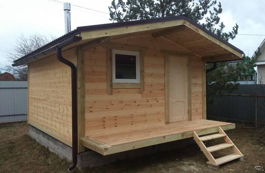 Кому подойдет щитовая баня? Если вы не располагаете большим бюджетом и стремитесь к быстрой стройке, этот вариант для вас. Минусом считается недолговечность проекта, всего 10 — 15 лет, тогда как дорогостоящая баня из сруба прослужит всю жизнь. Сама конструкция весит немного, поэтому ее ставят на столбчатый фундамент, столбы при этом размещают под углами здания, в местах пересечения внутренних стен и под их краями.