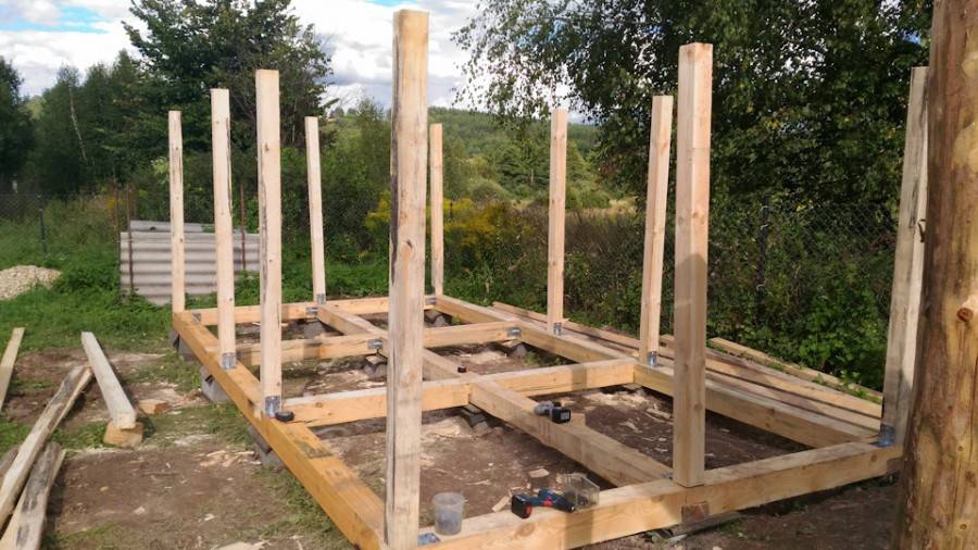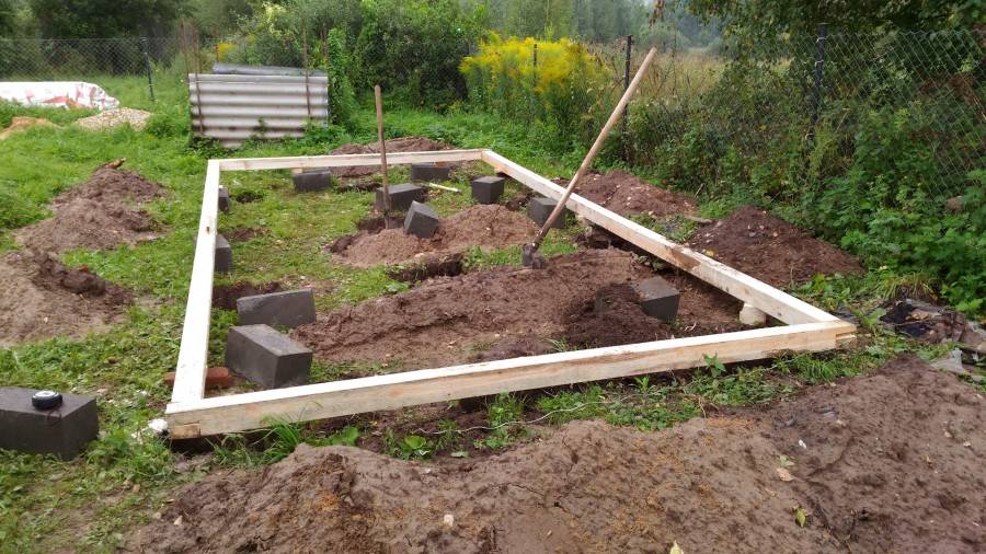 А вот как выглядит строительство небольшой каркасной бани на таком фундаменте: