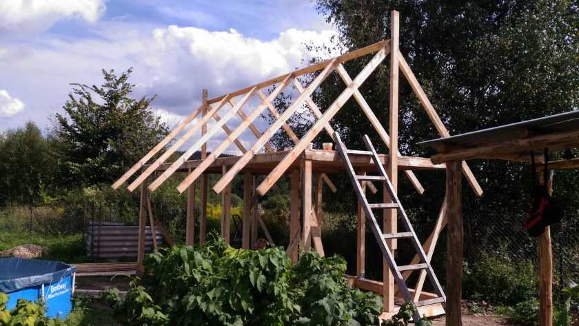 Но так как у нашей бани будет двускатная крыша, чердачное помещение можно использовать для хранения разного инструмента и ненужных предметов. Чтобы построить крышу, необходимо: