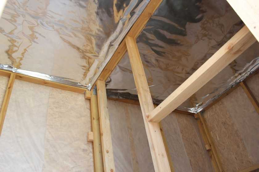 После укладки утеплителя деревянный каркас будет защищён также пароизоляционной плёнкой, которую крепят с внутренней стороны теплоизолирующего материала.