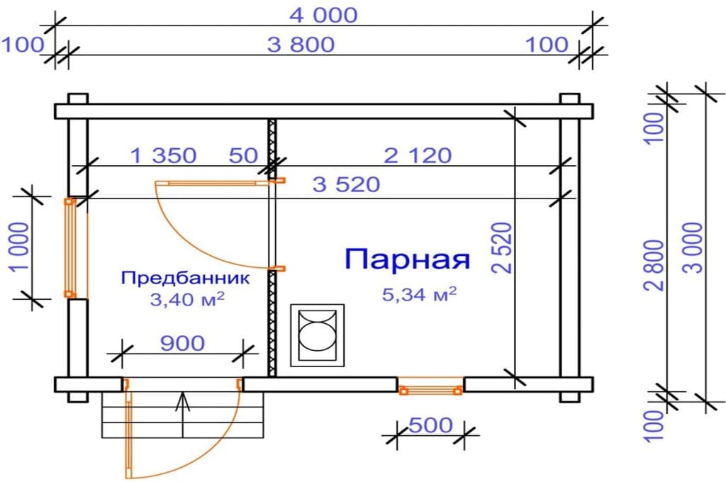- схему установки банной печи с выносом ее конструктивных особенностей.