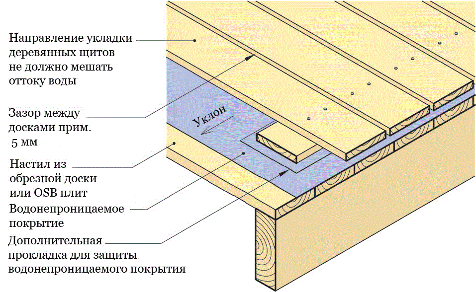 Поверх рамы крыши можно положить лист ОСП, а можно просто набить доски «елочкой», чтобы вода не затекала в их соединение. Также можно использовать шифер, ондулин, металлочерепицу или профнастил. Как говорилось выше, лучше, если у пристройки будет такая же крыша, как у бани.