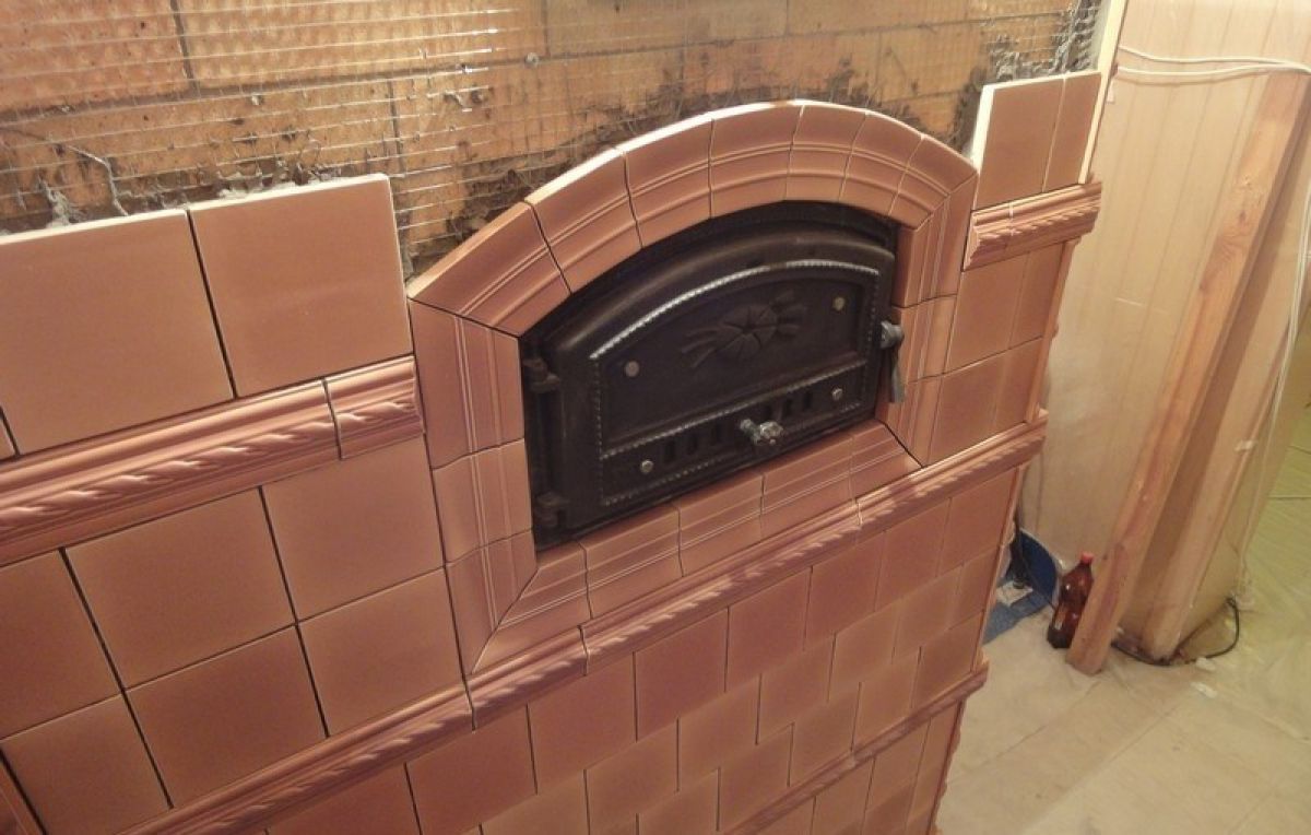 Керамическая плитка вполне пригодна для наружной облицовки стен печи, ведь она устойчива к нагреванию. Для укладки плиток на вертикальную плоскость стены в кладочные швы вставляют гвозди, на них наклеивают на раствор каждую деталь отдельно, оставляя широкий шов для компенсации теплового расширения. Швы затирают эластичной мастикой.