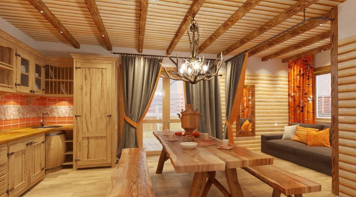 - Обеденная зона. Она занимает самую большую площадь, так как рассчитана на полноценные застолья, без которых широкая «русская душа» обычно не обходится;