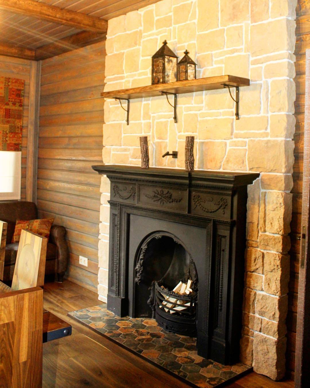 Если есть желание выполнить отделку в русском стиле, то можно использовать декоративные панели, имитирующие оцилиндрованное бревно. Блок-хаус создает оригинальный рельеф на поверхности стены и ощущение настоящего деревянного сруба.