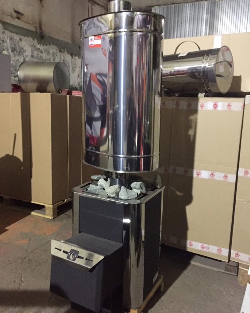 Выводимый через дымоход воздух может достигать температуры около 500°С, поэтому водяной бак на дымоходе обеспечит максимально быстрый нагрев воды, а т. к. воздействие горячего воздуха не прекращается во время всего использования парной, жидкость не будет остывать.