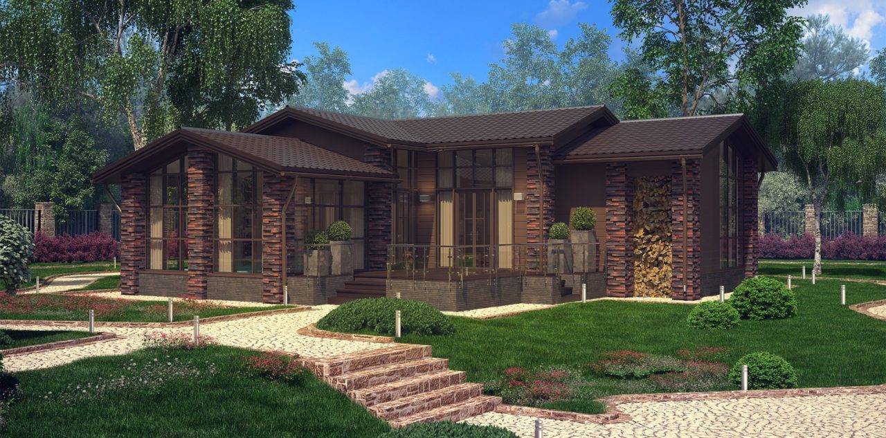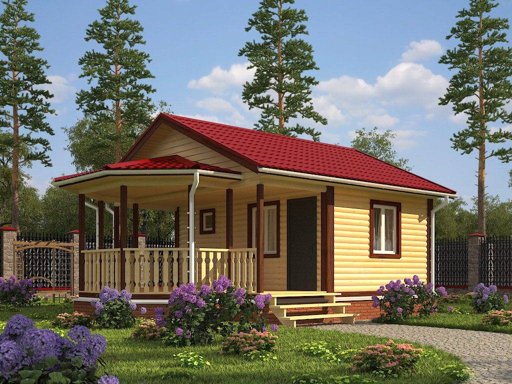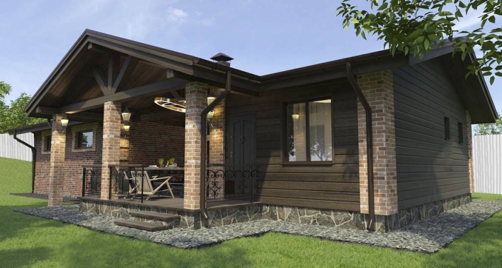 Одноэтажная баня с террасой