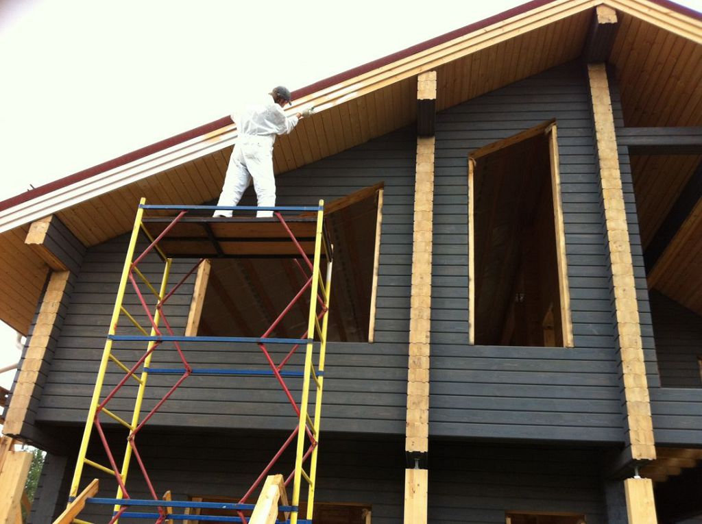 Перед выбором краски необходимо обратить внимание на качество деревянных поверхностей. Если стены возведены из бревна или бруса, нет необходимости в их предварительной механической подготовке к окрашиванию