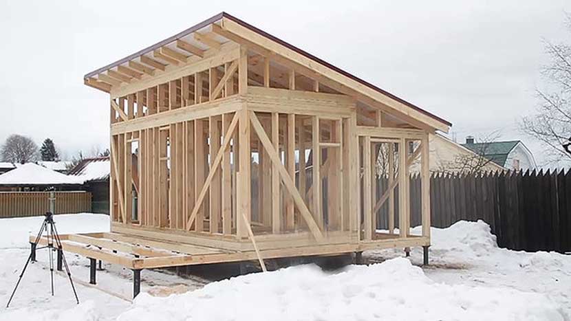 Каркас небольшого дома с односктной крышейИсточник yandex.uz