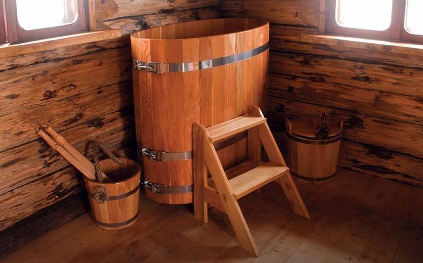 Это своеобразные бочки различных объёмов и конфигураций. Современная промышленность подстраивается под самого требовательного клиента и предлагает товар на любой вкус и кошелёк. Вы можете позволить себе купить большую деревянную купель с подогревом, с подсветкой, с гидромассажем и т. д. А можно обойтись простой бочкой с подставленной к ней лестницей. Стоит также упомянуть японские бани фурако и офуро, которые делаются именно из древесины кедра, дуба или лиственницы.