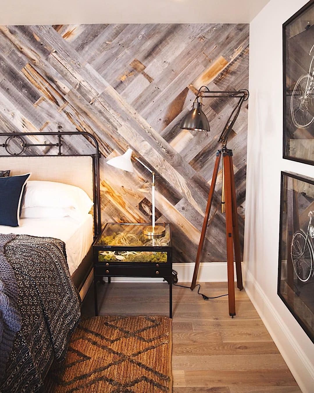 Оформление стены у изголовья кровати ламинатом