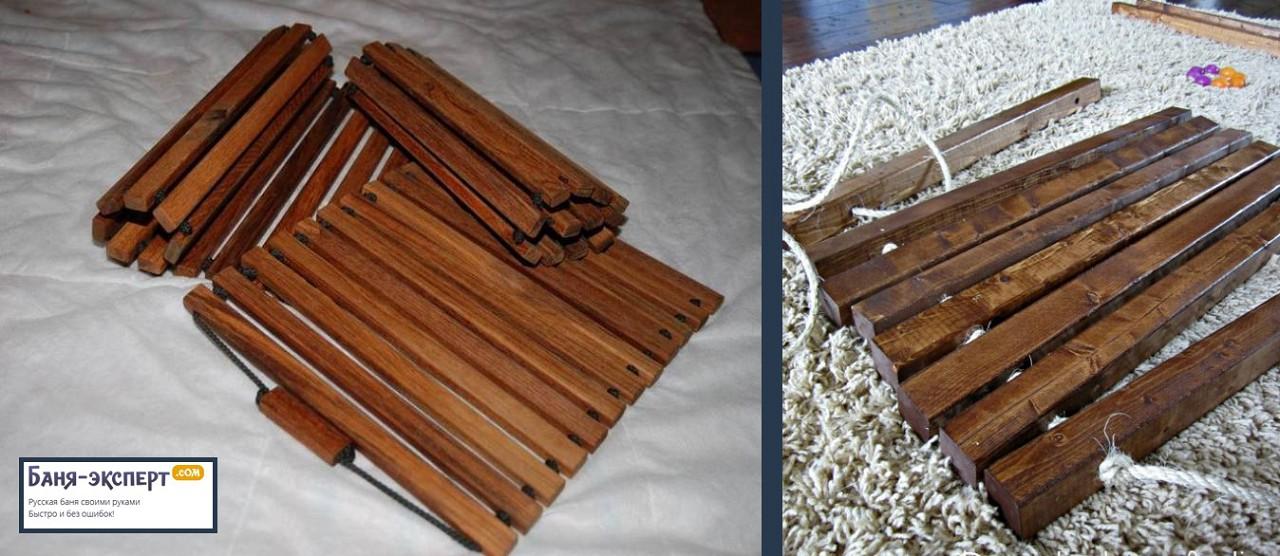 Деревянный коврик для бани можно сделать за 2-3 часа, если заранее подготовить все необходимое: