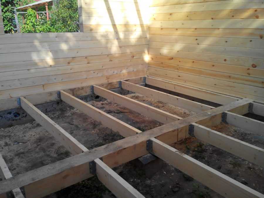 Процесс обустройства пола выглядит следующим образом. Первым делом необходимо смонтировать лаги. Их делают из бруса 200х200 мм. Сверху настилают доску – обрезную или шпунтованную, с системой шип–паз. При сильном нагревании древесина хвойных деревьев выделяет смолу. Поэтому лучше выбирать пиломатериалы, произведенные из лиственных пород, кроме дуба. Оптимальный выбор – лиственница. Между стыками оставляют небольшие зазоры, которые пригодятся для вентиляции и удаления излишков воды