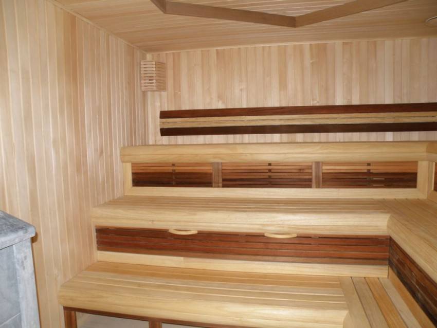 - при большем количестве отдыхающих в сауне можно устроить трехъярусные лежаки, однако следует учесть, что на третьей полке температура будет уже ощутимо выше, чем внизу;