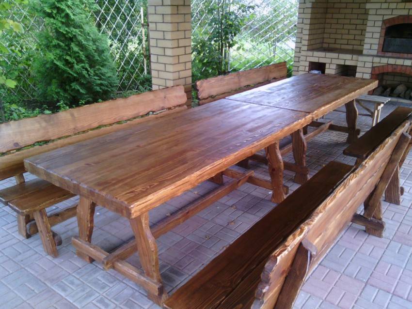 Для комнаты отдыха самыми главными элементами являются деревянные стол и скамьи. Конструкция их очень проста, но прежде чем приступить к изготовлению, стоит рассчитать его размеры и создать чертеж.