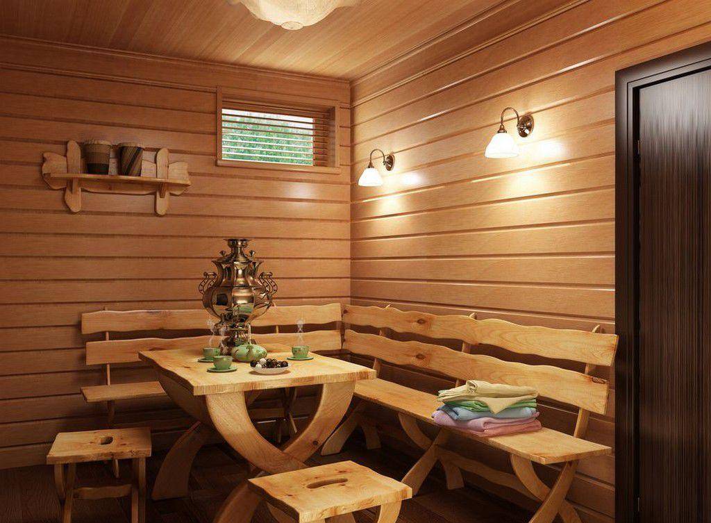 Для создания особой атмосферы уюта и расслабления не рекомендуется использовать для бани старую и ненужную мебель. Исключение составляет брашированная мебель, стилизованная под старину.