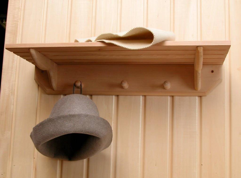 Также здесь может быть установлена компактная вешалка для одежды и банных принадлежностей – полотенец, шапочек и мочалок. Для ее установки стоит выбирать укромное место, защищенное от попадания брызг.