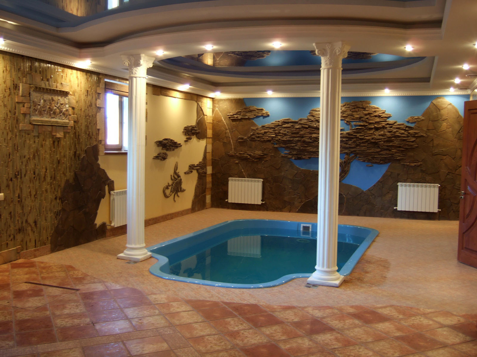 По желанию владельца могут быть добавлены фонтаны, живые растения и создание потолка в форме купола.
