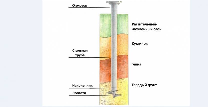 Свайно-винтовая технология возведения фундаментов основана на принципе прохождения точечной опоры сквозь слабые слои почвы к плотным несущим пластам.