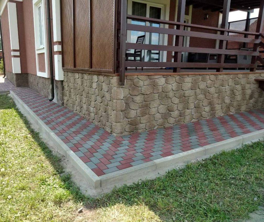 Отмостка из плитки вокруг дома тротуарной и керамической