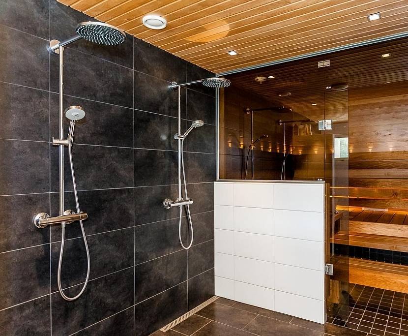 Для отделки душевой и сауны оптимальна древесина. Специалисты рекомендуют использовать лиственничные разновидности, т.к. материалы не накаляются, не выделяют смолу, быстро высыхают, не повреждаются плесенью.