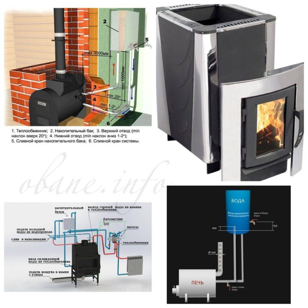 Банные печи с водяным контуром для отопления разделяют на два типа: