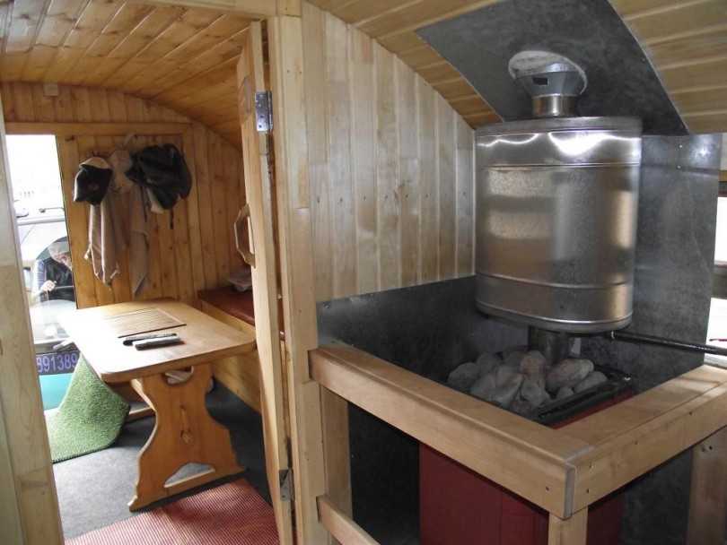 Для этого достаточно поставить небольшую открытую каменку, которая будет размещаться над топкой. Ее будет достаточно, чтобы камни прогрелись до 250 градусов.