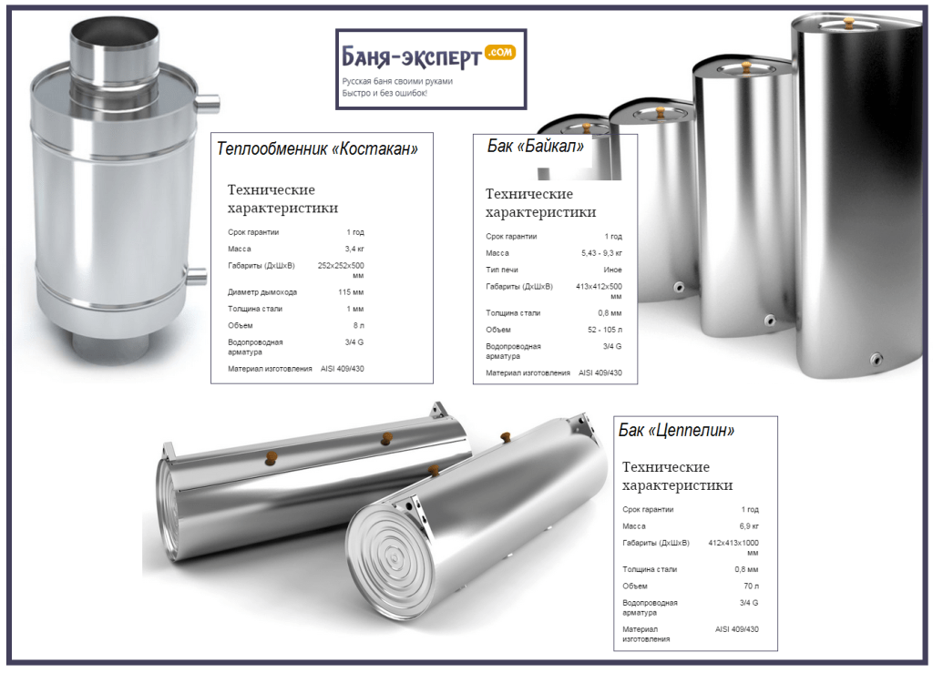 - «Ангара». Дровяная печь с объемной топкой, каменкой, вместимостью до 70 килограмм, оборудованная теплообменником и емкостью для нагрева воды.