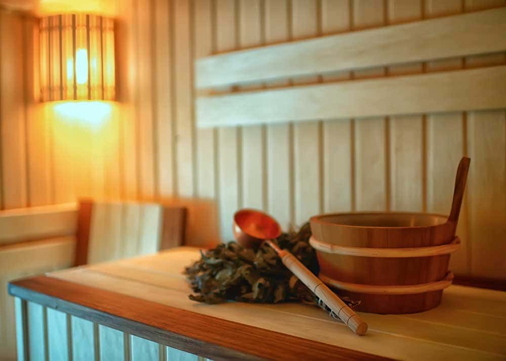 Стены и потолок неплохо будет обшить натуральным кедровым или липовым блок-хаусом. Вместе с конопаткой с использованием ароматной пакли такая облицовка будет способствовать положительным ощущениям и эмоциям.