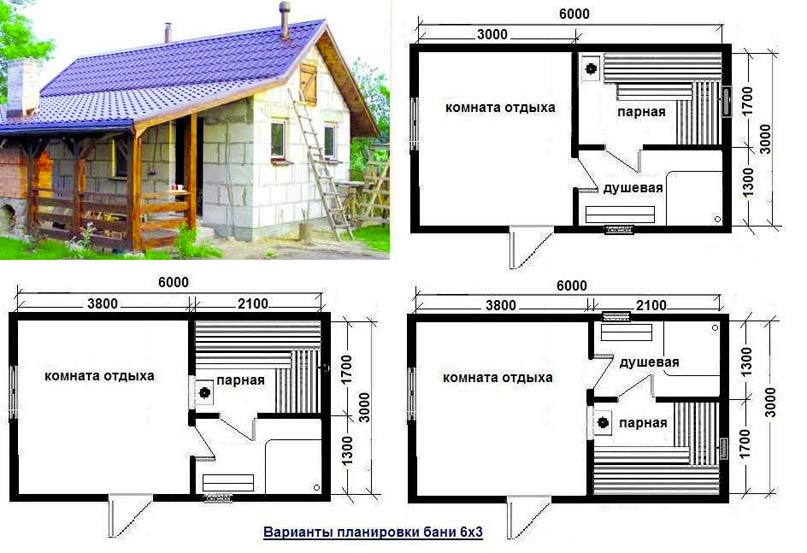 Планировка бани из пеноблоков 6 на 3 (несколько проектов)