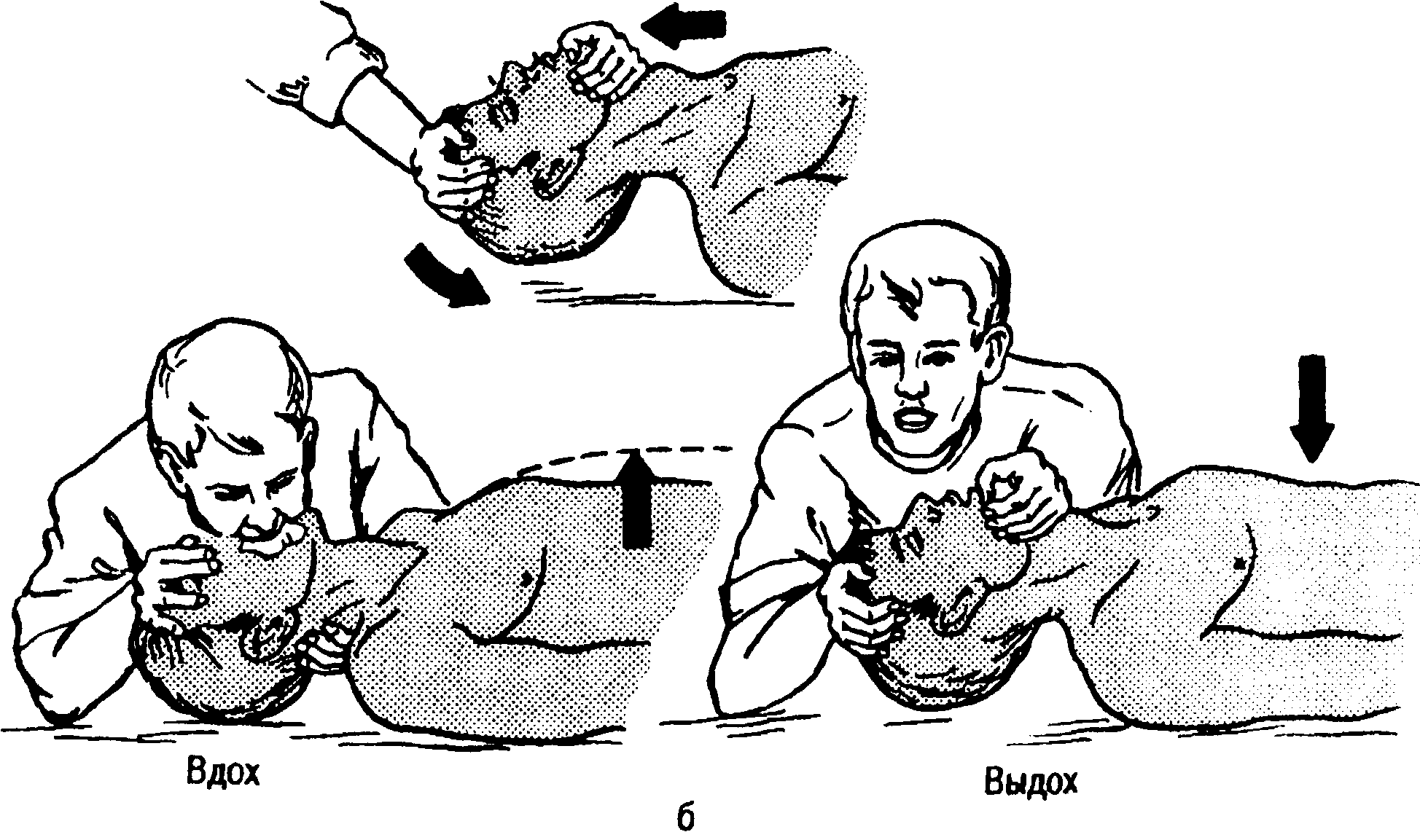 Для процедуры искусственного дыхания приподнимите подбородок человека и немного запрокиньте его голову. Под лопатки положите свернутую одежду или валик из полотенца. Очистите полость рта пострадавшего, если до этого его тошнило, накройте сверху чистым носовым платком или простыней, с проделанной в центре дырой. Зажмите пострадавшему нос, широко раскройте его рот, глубоко вдохните и сильно вдуйте воздух в ротовую полость человека, которому плохо. Уберите руку от его носа, давая возможность воздуху выйти.