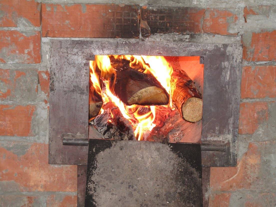 - Топка. Это камера, в которой и происходит сгорание топлива, чаще всего дров. Стенки и дно топки должны быть толстыми, так как именно на них приходится основная температурная нагрузка. Для закладки дров в топку служит дверца спереди, пи желании её можно даже оснастить жаропрочным стеклом.