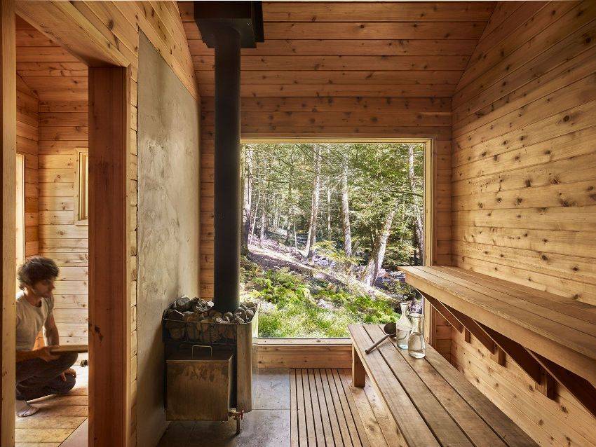 - Материал. Для внутренней отделки бани используется исключительно натуральное дерево. Искусственное сырье не обладает такой удачной комбинацией положительных свойств. При строительстве сауны помимо древесины задействуют и другие материалы, позволяющие повысить качество санитарной уборки и улучшить гидро- и теплоизоляцию.