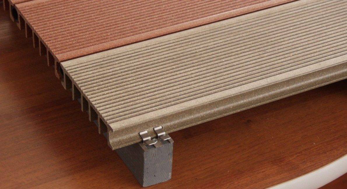 - Из полимерной доски – пустотелые полимерные панели, копирующие цвет и фактуру натуральной древесины. Их крепят, так же как и обычные деревянные доски, но этот материал намного прочнее, стойкий к механическому воздействию и дольше служит